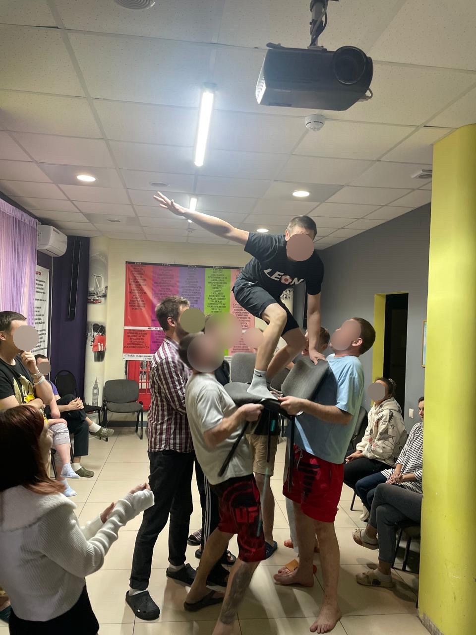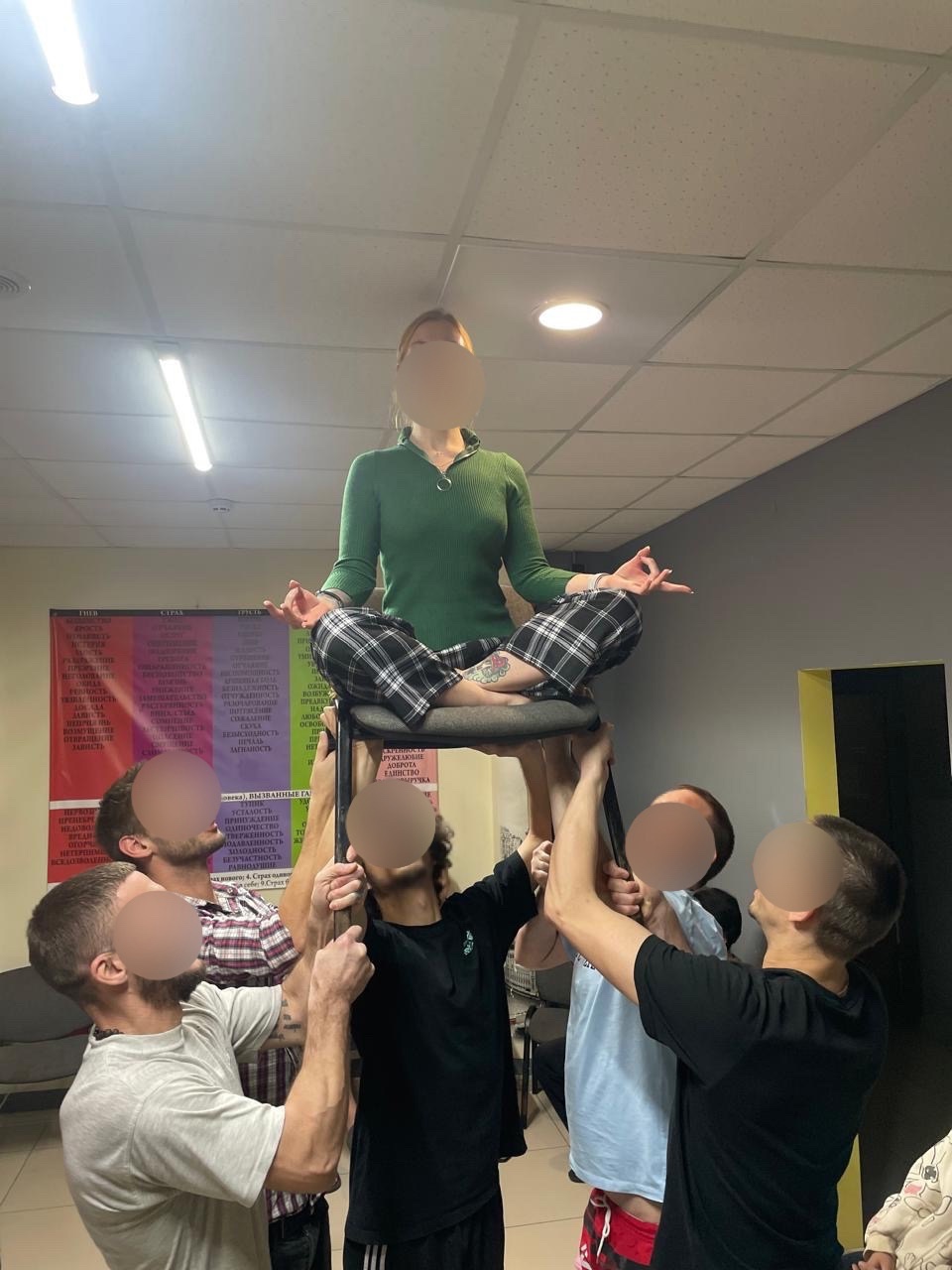 - Ключевой момент: Благодаря слаженной работе и правильному распределению усилий группа легко поднимает любого участника, независимо от его веса.